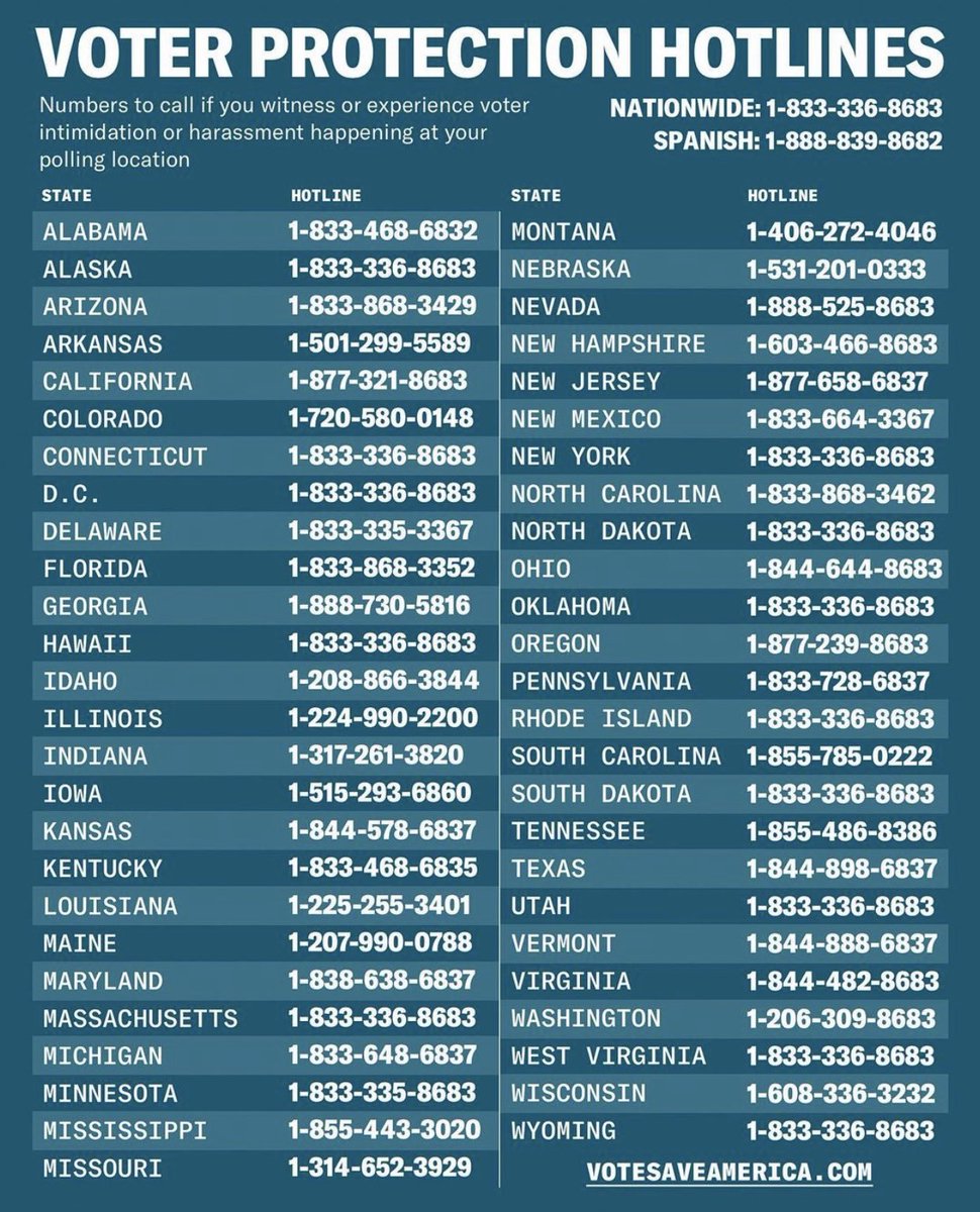 RT @BerniceKing: Share these Voter Protection Hotlines. #Vote #Vote2020