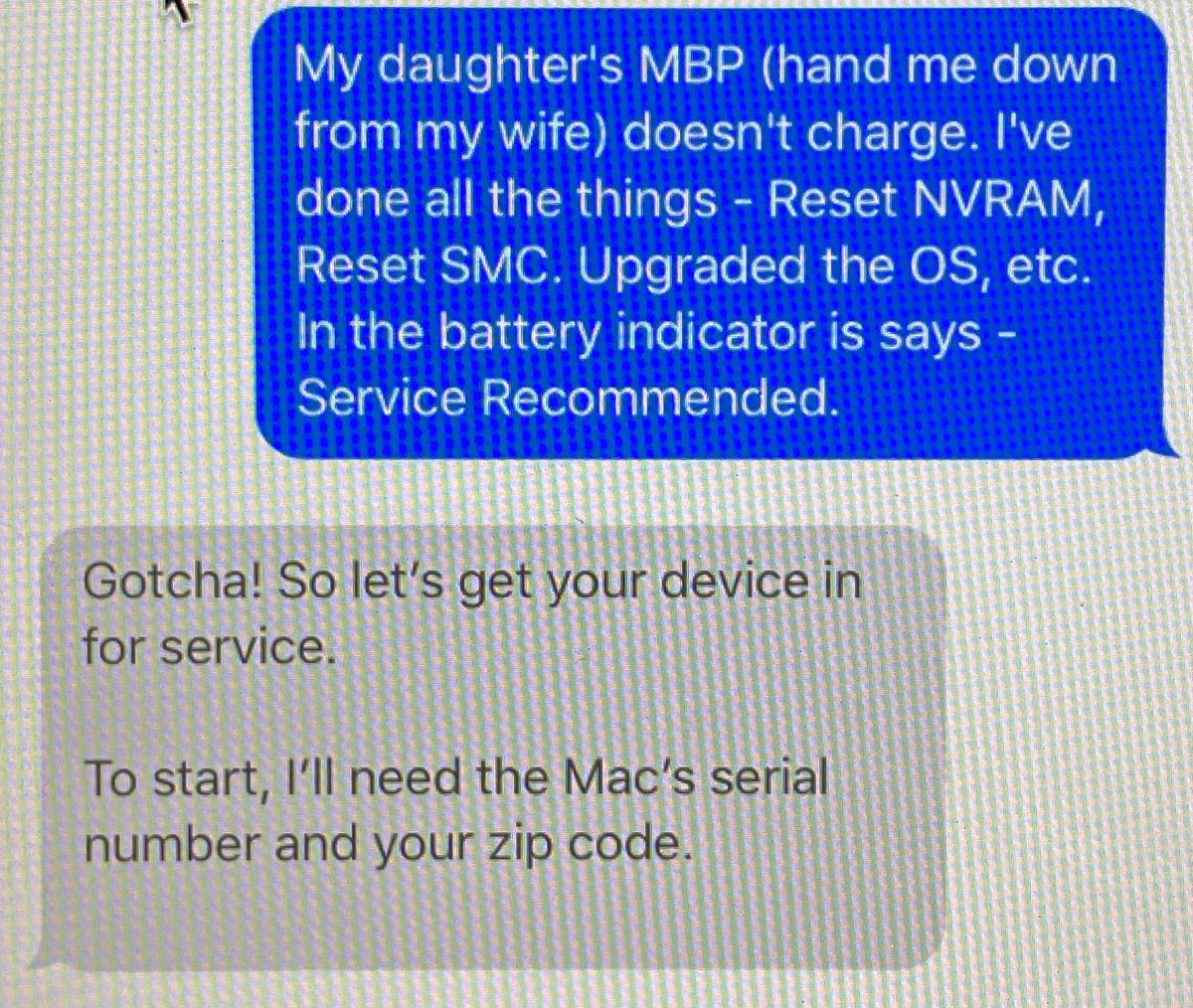 Other companies should take notes from @Apple support. Any other company would of had me walking through a troubleshooting tree.