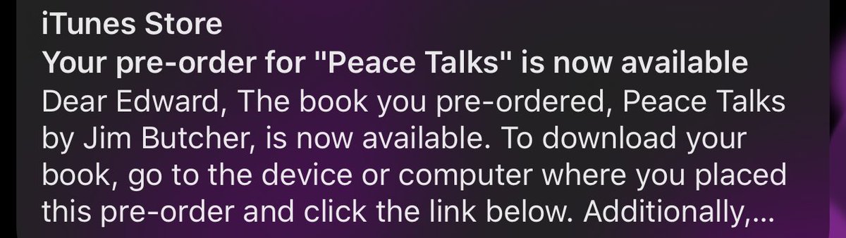 Well I guess I know what I’m doing this weekend: Reading @longshotauthor ‘s latest #DresdenFiles book #PeaceTalks.