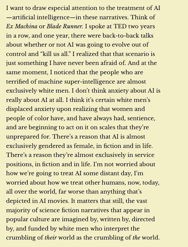 RT @christinelove: The thing is that science fiction has primed us to frame AI as a specific type of human rights issue, because AI is grea…
