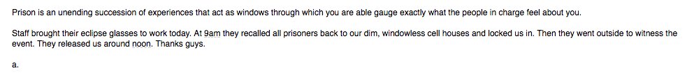 RT @MauriceChammah: Sad words from Washington prisoner Arthur Longworth on his experience of today's eclipse: