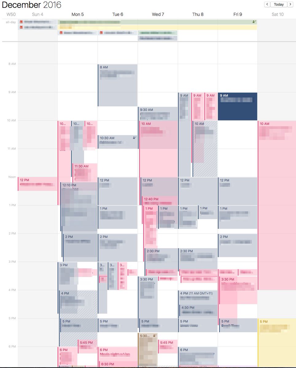Anyone who thinks a calendar/scheduling start up wouldn't be a good thing, here is my calendar for next week as it currently stands.