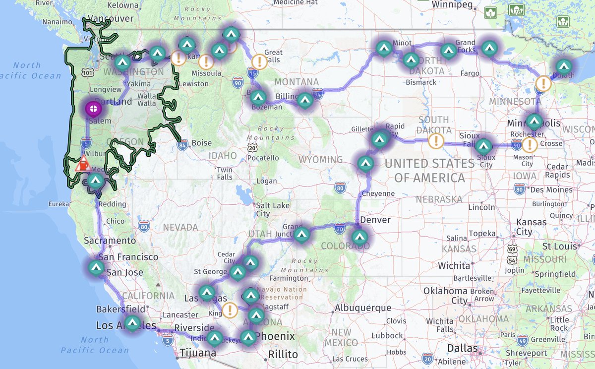 Initial route of next summer's RV travel plans.